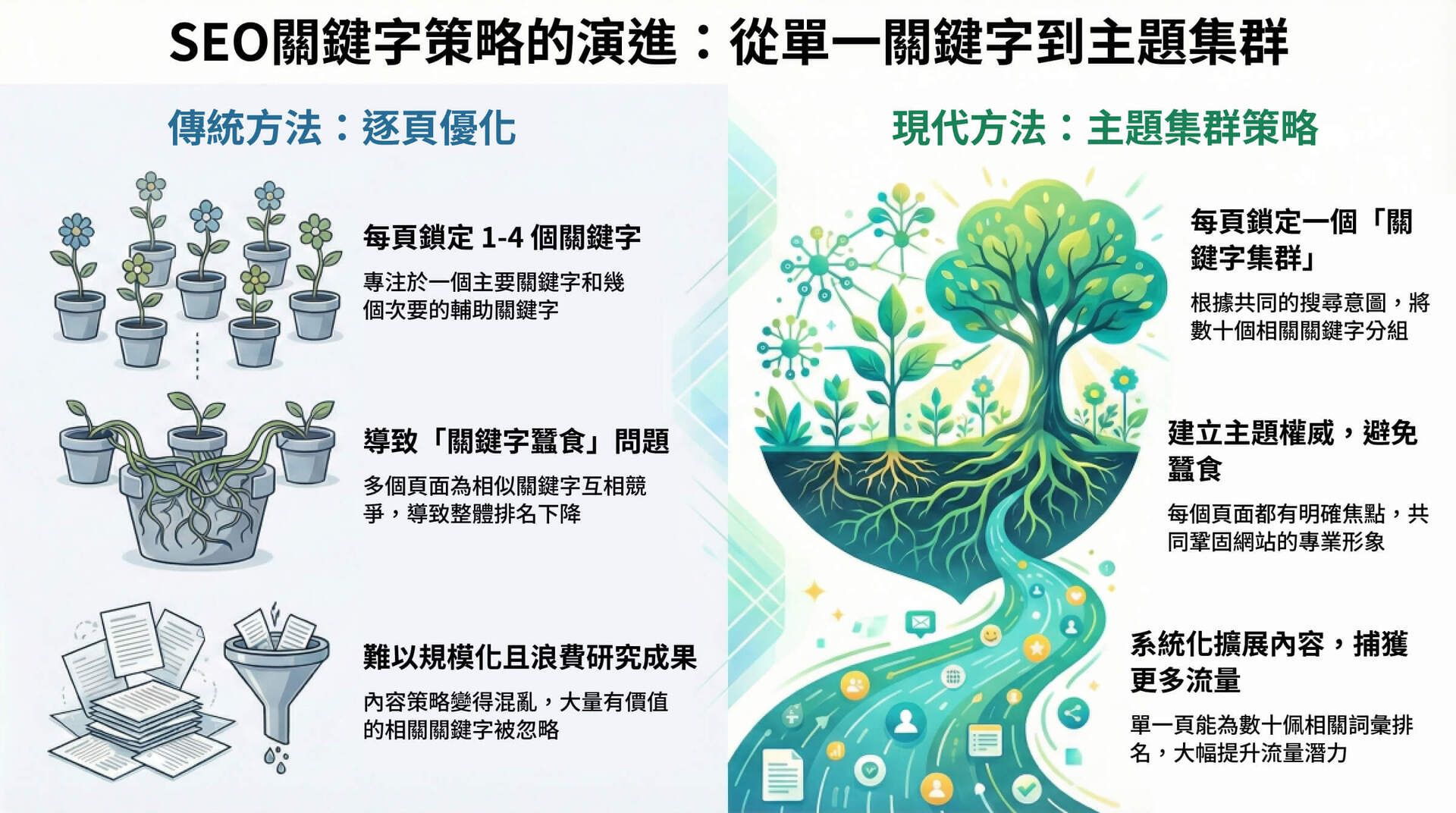 SEO 關鍵字策略的演進:從單一關鍵字到主題群集
